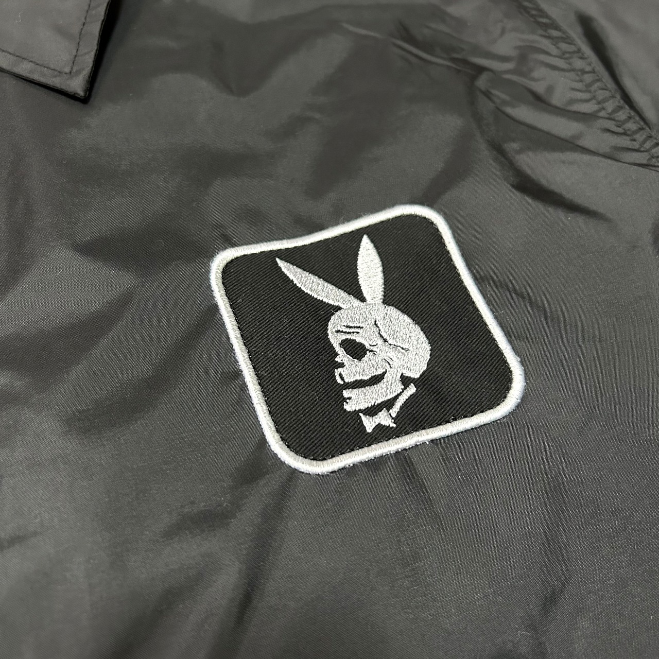 デザインの主役となるワッペンは、おじいさんのような、スカルのような、どっちかわからないような顔つきをしたバニーフェイス。ヘタうまな雰囲気です。