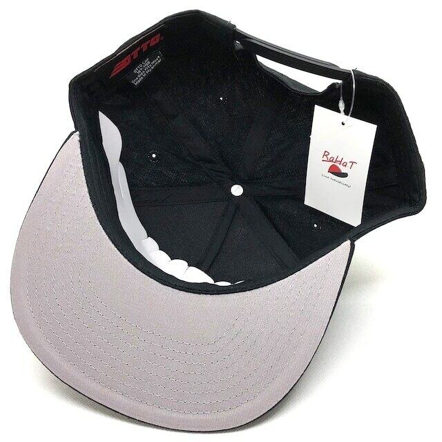 ボディはOTTO製の人気のミッドクラウンフラットバイザーの5パネルキャップ です。バイザー裏はグレー、スナップバックでサイズ調整可能です。重厚感のあるキャップです。ボディにもこだわりたい方に是非オススメです。