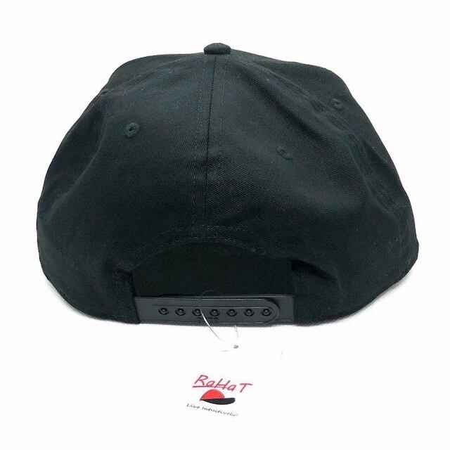 ボディはOTTO製の人気のミッドクラウンフラットバイザーの5パネルキャップ です。バイザー裏はグレー、スナップバックでサイズ調整可能です。重厚感のあるキャップです。ボディにもこだわりたい方に是非オススメです。