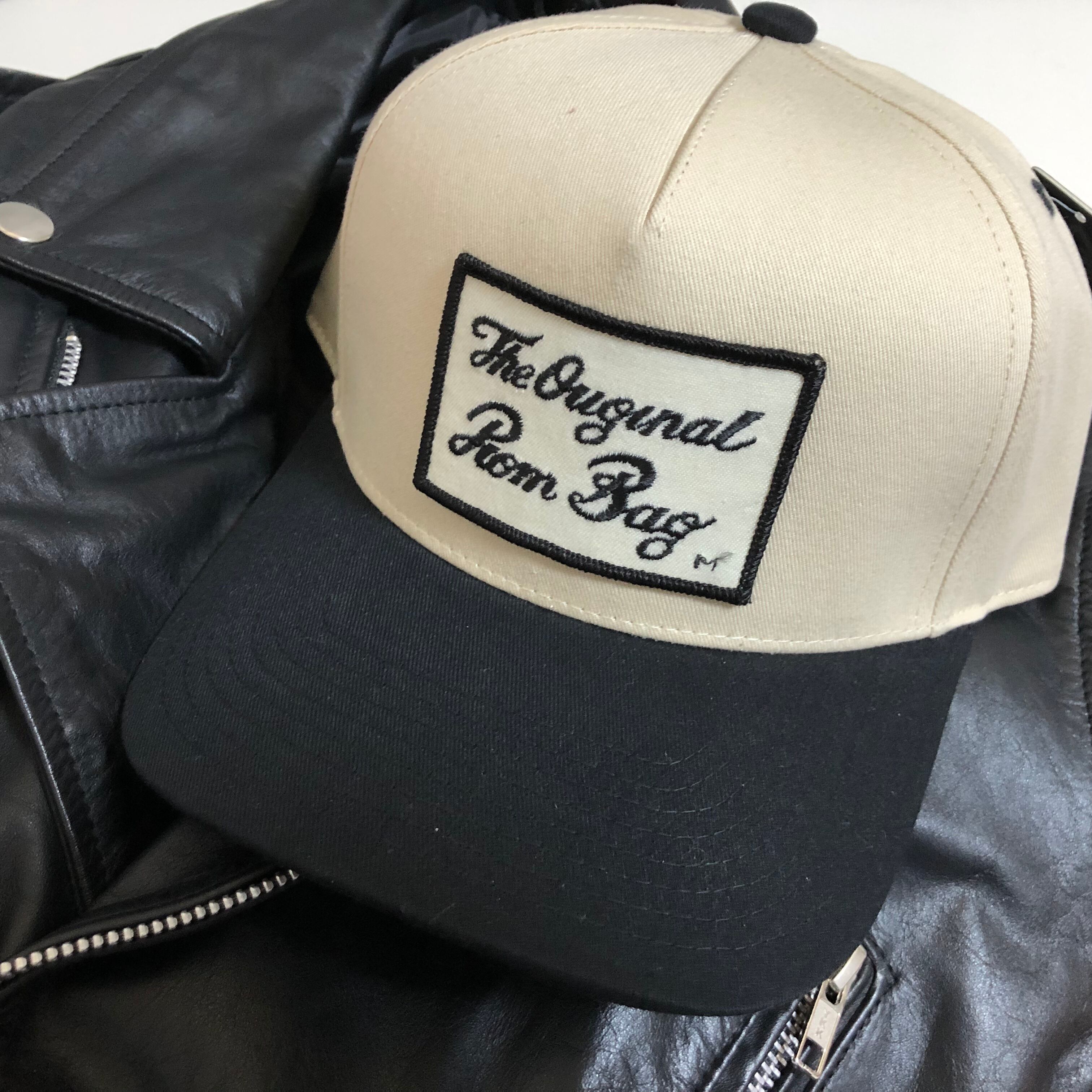 筆記体フォント ビンテージ 70s ワッペン ツートンカラーキャップ